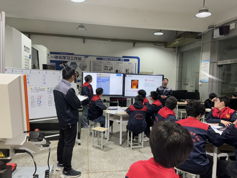 为推进工学一体化教学,2025年4月23日下午,王军老师在A一楼五轴工学一体化教室成功开设了数控加工(数控铣工)专业工学一体化教学校级公开课——《简单零件数控铣床加工》课程中的第二个学习任务:阀门底座定位板零件数控铣加工的学习环节二:制定计划。各学院教学院长、教学教研科科长、部分教师代表参加观摩并交流研讨。