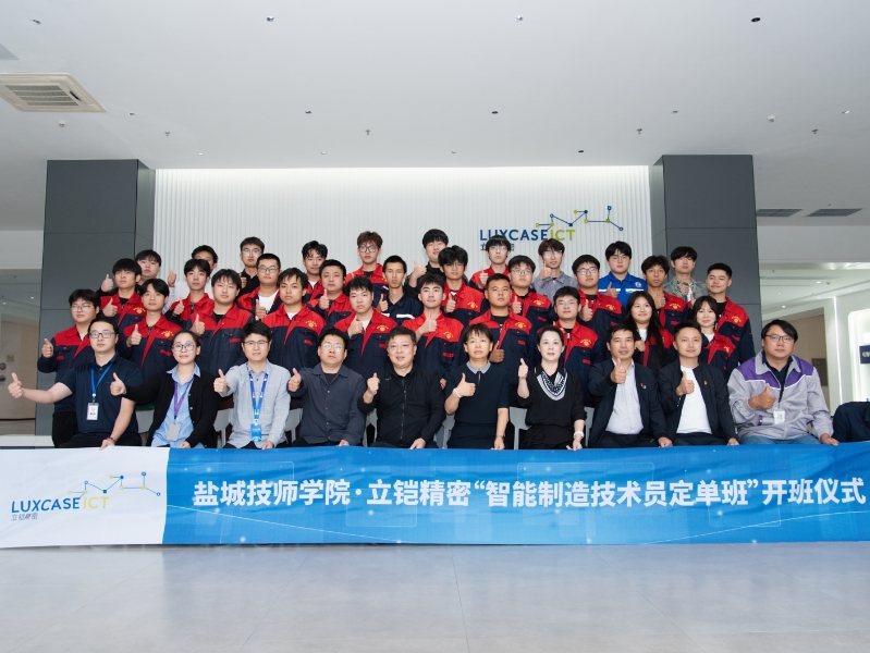 为深化产教融合,拓展学生视野,10月16日下午,智能制造学院与立铠精密科技(盐城)有限公司联合开展了一场别开生面的学生实践学习活动。本次活动作为校企党建联盟签约后的首次联合行动,不仅搭建了学生与企业交流的平台,也为“智能制造技术员定单班”的学生们上了一堂生动的“开学第一课”。